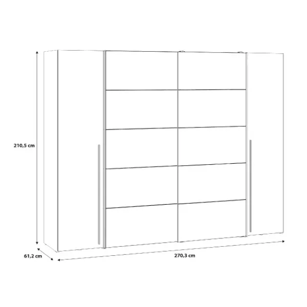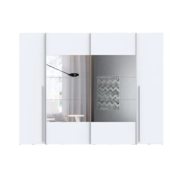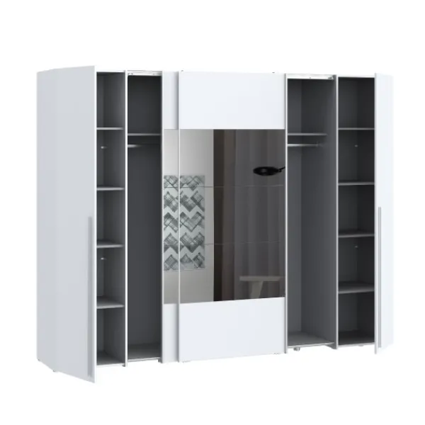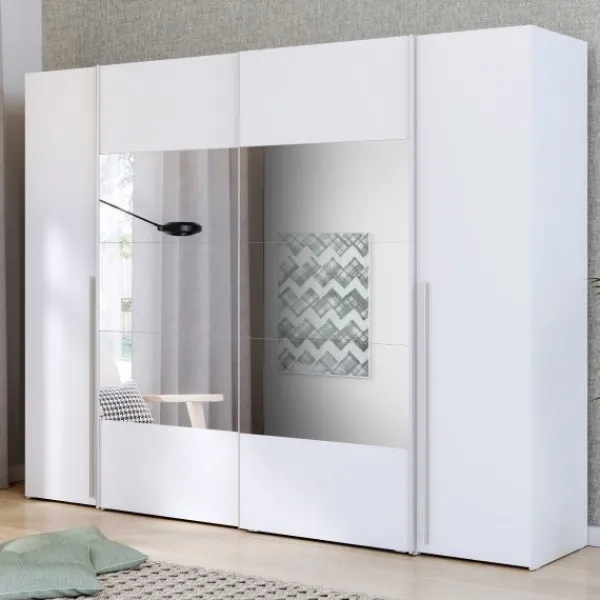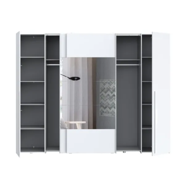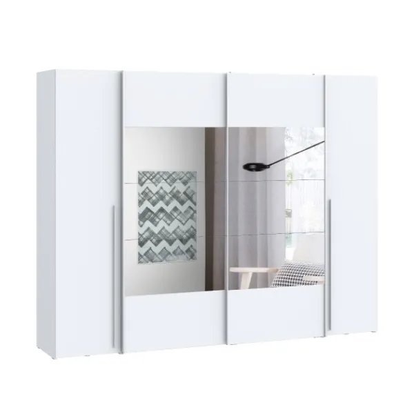 El armario Magnun es el modelo más grande, más completo y más original de todos. Tiene 270cm de ancho, para que puedas almacenar todo lo que necesites. Además con los espejos en las puertas aportará más amplitud a tu dormitorio. Disponible en color blanco.
