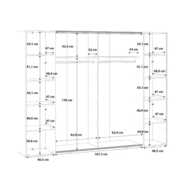 2 puertas batientes en los extremos con baldas en su interior incluidas.