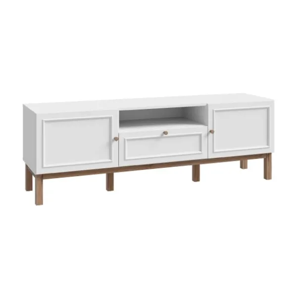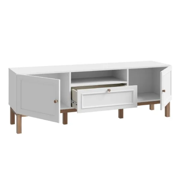El bajo de televisión dos puertas y un cajón Love de 160cm es una opción segura, gracias a su diseño y su calidad. De estilo romántico destaca por su contraste de colores, sus patas altas y el relieve en las puertas que le dan un toque diferente y elegante. También disponible en la web el aparador de esta serie.