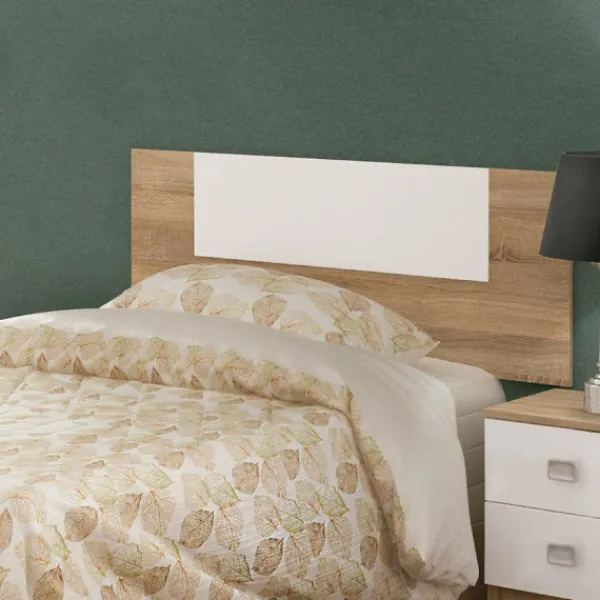 Cabecero juvenil de 110cm. que se instala colgado en pared. Es combinable con el resto de muebles de la serie Champions. Moderno, práctico y funcional. El color de la base es Cambria, un tono de roble, combinado con el blanco de la moldura. Color moderno y elegante para dormitorios juveniles que huyen del colorido tradicional. Fabricado en melamina de alta calidad. Mueble KIT.