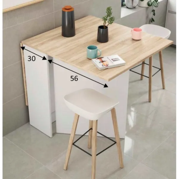 Bonita mesa de cocina modelo Volare. Es una mesa muy adaptable ya que tiene dos alas abatibles que aumentan su tamaño. Con un diseño sencillo y colores roble y blanco. Funcionamiento sencillo. Tipo KIT. Envio gratis.