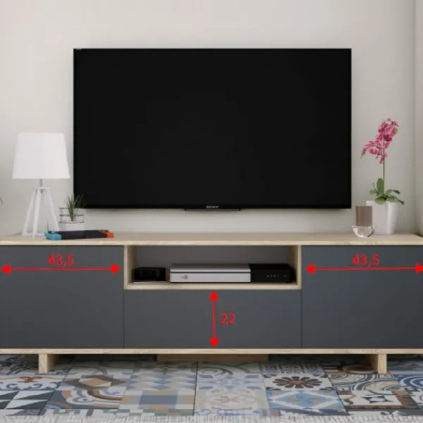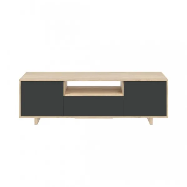 Mueble televisión de 3 puertas y un hueco en la parte central. Añadiéndole Bisagras metálicas para las puertas y Tacos ABS anti ruido. Color Roble canadian-Gris Antracita. Mide 150cm de ancho. Mueble KIT. Envío gratis