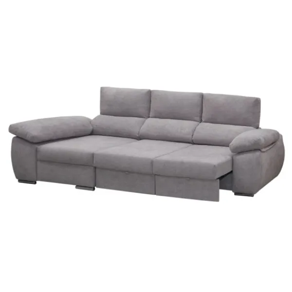 Mecanismos reclinables de carraca en respaldos Al abrir los deslizantes del sofá, la chaise se convierte en cama.