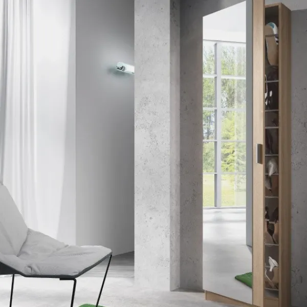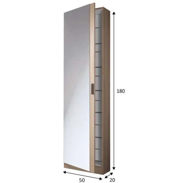 Zapatero Kris de una puerta con espejo con capacidad de 16 pares de zapatos aproximadamente. Bonito, práctico y funcional. En color roble canadian. ENVÍO GRATIS