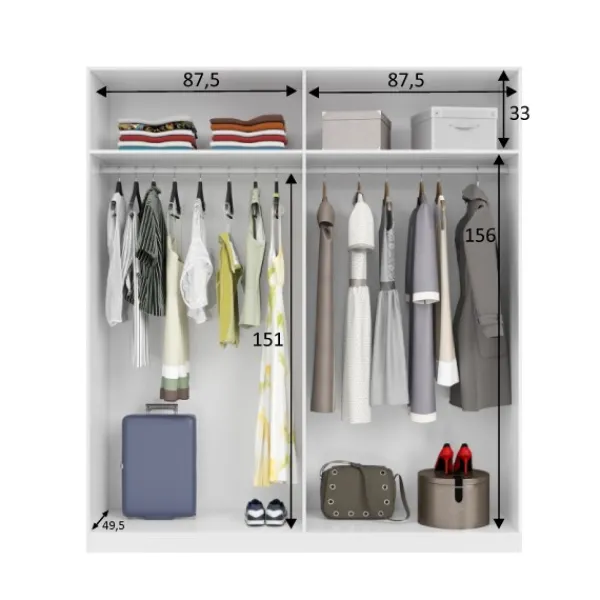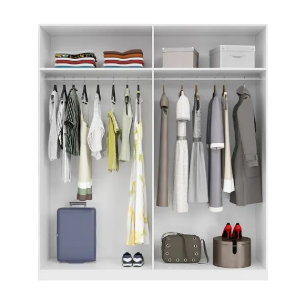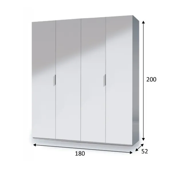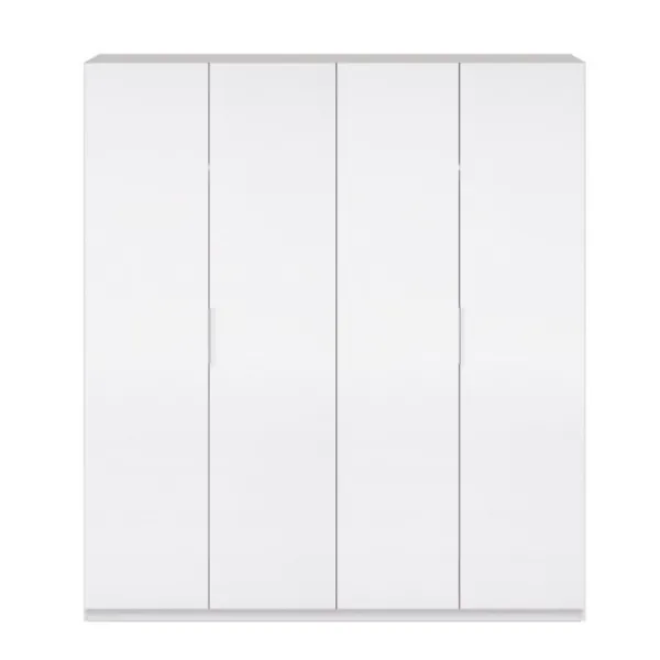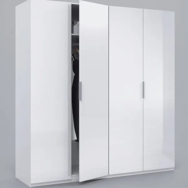 Armario de 4 puertas en blanco brillo que combina en cualquier habitación. Mide 180cm e incluye dos baldas y dos barras, que permiten mantener el orden de todo. En color blanco. ENVÍO GRATIS