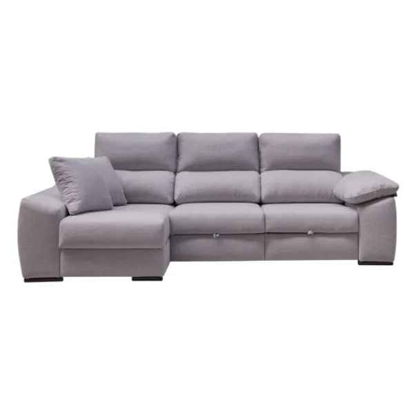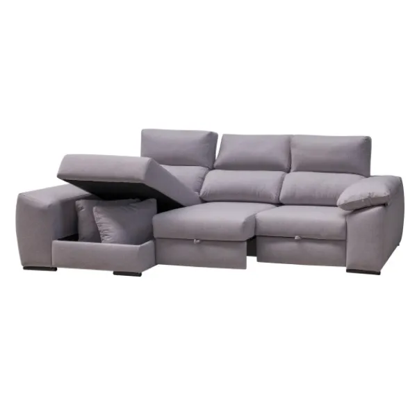 Grande, cómodo y práctico, así es el chaiselongue modelo Damasco de 285cm. Tapizado en tela calabria 14. Destaca gracias a sus respaldos reclinables, asientos deslizantes y arcón en el módulo chaiselongue.