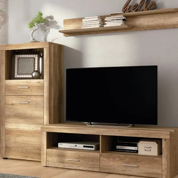 Magnífico salón de líneas actuales y modernas que combina en cualquier proyecto decorativo contemporáneo. Compuesto por un mueble bajo para la televisión con dos huecos y dos cajones para almacenar cosas. Además tiene un estante doble con respaldo perfecto para dejar sus bestseller. Un precioso bodeguero para guardar los juegos de mesa, los manteles o lo que tú quieras. El bodeguero tiene un hueco ideal para colocar algún elemento decorativo, en nuestra sección de decoración puede adquirir complementos decorativos divinos de precio bajo. No deje de pasarse le sorprenderá gratamente, para cualquier duda contacte con nosotros estamos encantados de poder ayudarle.