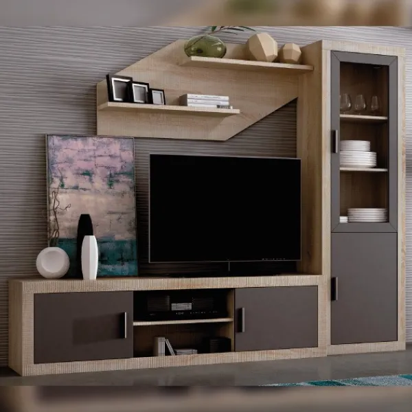 Las dos puertas de la vitrina 1 pta. madera 1 pta. cristal, de color cambria-grafito, pueden tener una ligera variación de tono debido al proceso de fabricación.