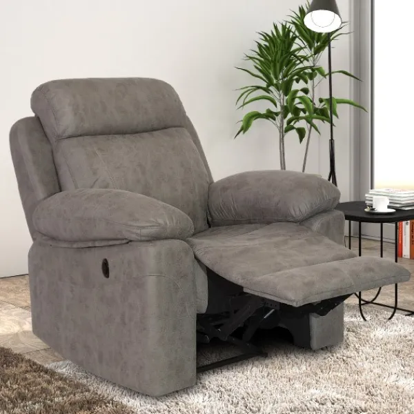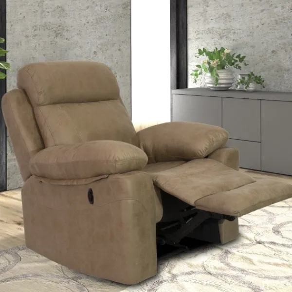 Sillón modelo Menfis. Una sentada comodísima, tapizado en tela Nolia de dos colores posibles: cemento y piedra. Con una apertura muy sencilla y fácil gracias a su relax eléctrico.