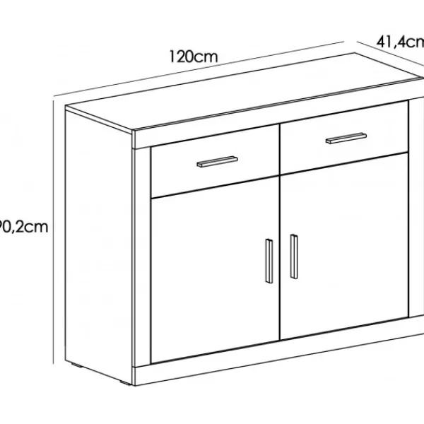 El aparador dos puertas de 120cm modelo Lara con dos puertas y dos cajones es un auxiliar práctico para diferentes tipos de ambientes. Práctico, elegante y muy económico. Disponible en dos colores. MUEBLE KIT.