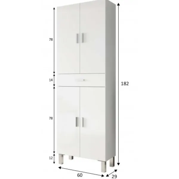 Columna modelo Aruba, de cuatro puertas y un cajón. Incluye un juego de patas que le dan un toque chulo. De color blanco brillo que puedes combinar perfectamente con muchos de nuestros baños. ENVÍO GRATUITO.