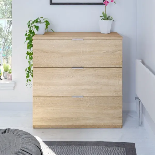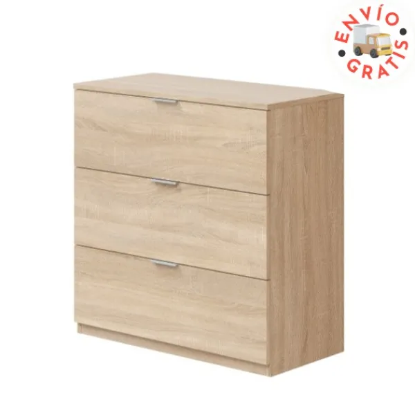 Un auxiliar perfecto para tu dormitorio, la cómoda 3 cajones perfecta para completar y almacenar todo lo que necesites. Mantén el orden y decora cualquier rincón. Disponible en color roble canadian. ENVÍO GRATIS.