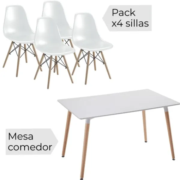 Gran conjunto formado por mesa y cuatro sillas del modelo Dinamarca. Aproveche esta oferta de compra conjunta. Un producto de calidad, resistente y confortable. Formato KIT. Fácil montaje.