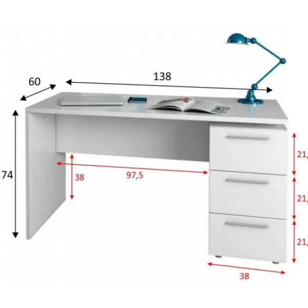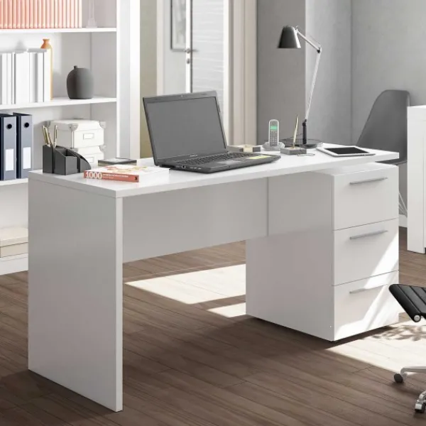 Mesa despacho completa con tres cajones donde se puede almacenar todo lo necesario. En color blanco artick, perfecto para combinar con la estantería a juego que también puede encontrar en nuestra web. Tipo kit. Envio gratis.