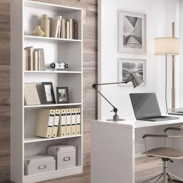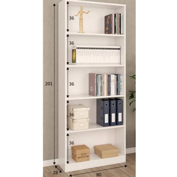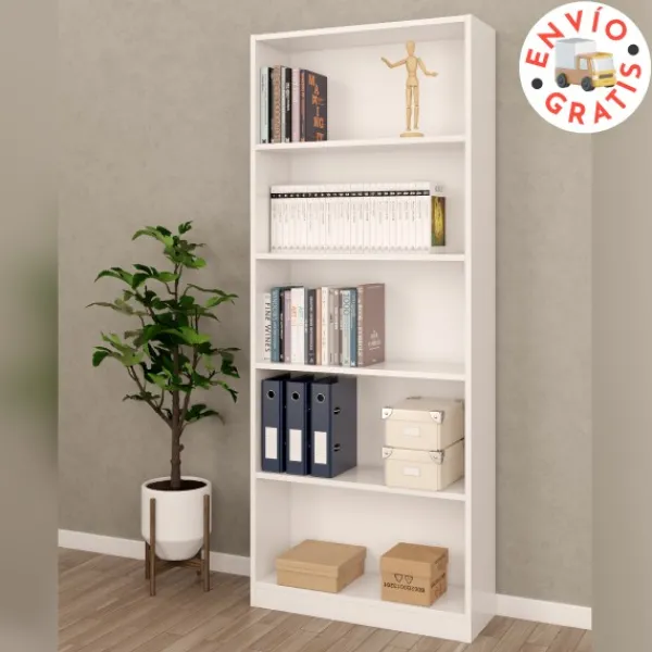 Estantería de 5 baldas modelo Theon, sencilla en color blanco-artik. Ideal para colocar todo tipo de cosas, puede ser un espacio de organización o un lugar con artículos decorativos. Tipo kit