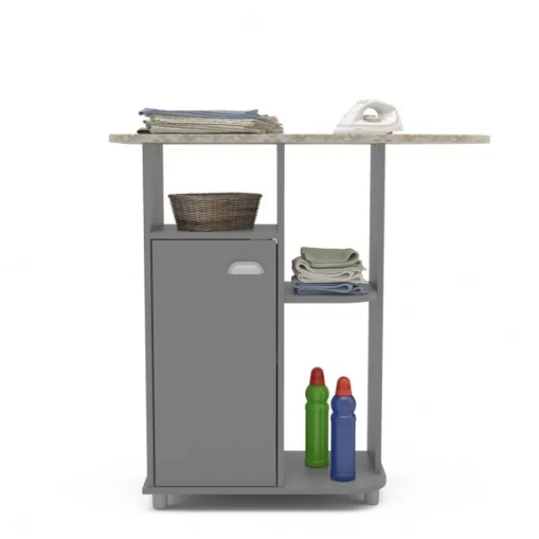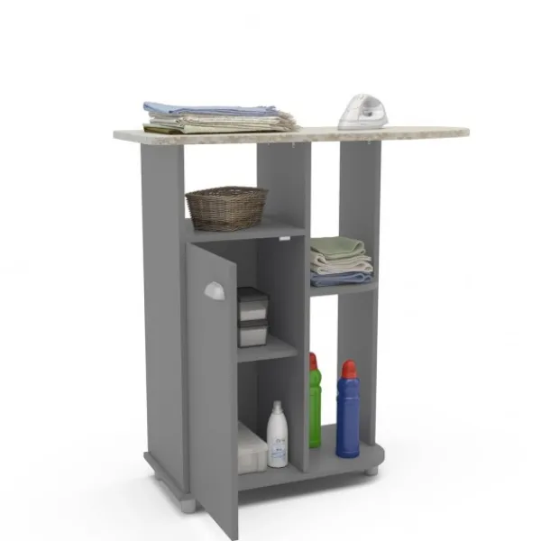 Producto novedoso. Se trata de un mueble que dispone de ruedas para poder transportarlo fácilmente cuando se vaya a usar. Dispone de mesa de planchado y varios estantes y puerta para guardar desde productos o la misma plancha, hasta la ropa pendiente de planchar. También disponible en color blanco con el nombre Asfeld2. ENVÍO GRATIS