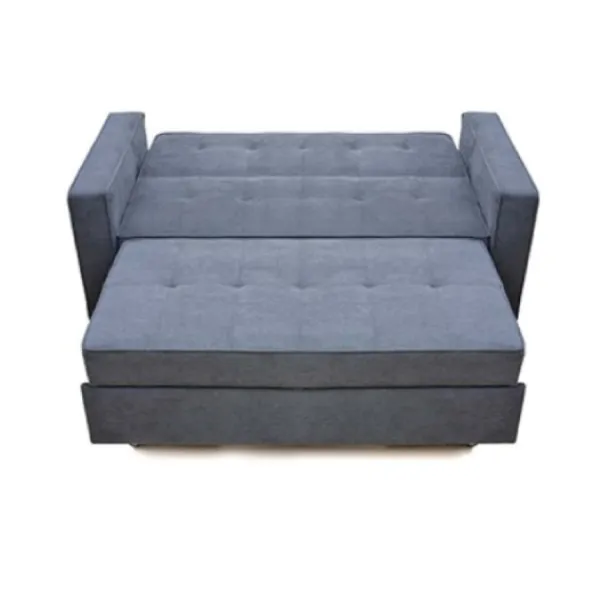 Sofá cama modelo Izan. Tapizado en tela gris. Si necesitas optimizar espacio y un sofá con la máxima funcionalidad, este es tu modelo.