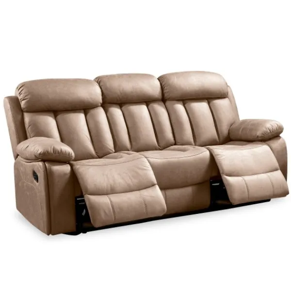 Sofá relax de más de dos metros, de estilo formal y elegante con envergadura suficiente para acoger a 3 personas. Su estructura está concebida para perdurar en el tiempo dada la calidad de sus materiales, los cuales van perfectamente acompañados de unos suaves asientos de espuma de alta densidad con muelles ensacados, que evitarán incómodos hundimientos y que, junto a su respaldo reclinable y a un reposapiés abatible, harán de su comodidad un placer diario. Podrá encontrar este artículo en tres colores distintas de una fabulosa tela de microfibra algodonada Jade, facilitando su combinación y adaptándose a las necesidades propias de cada persona.