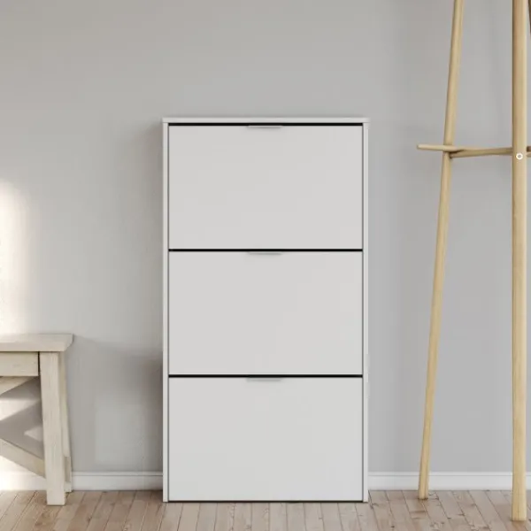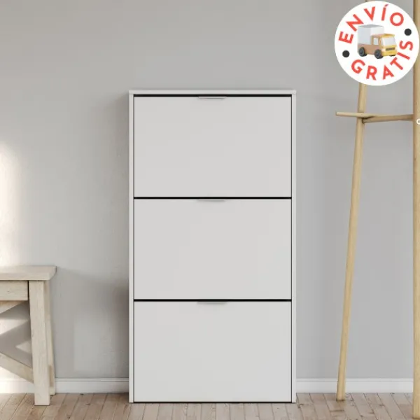 Zapatero de 3 puertas Maelys. Por fin tendrás tus zapatos recogidos y ordenados. Disponible en color blanco. Tipo KIT.