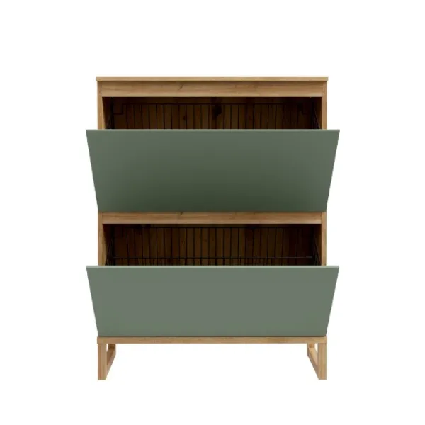 El zapatero Nature es ese modelo perfecto, de diseño y exclusivo que dará a tu casa un aire especial. Original gracias a su combinación de colores verde y roble, destaca por la gran capacidad y resistencia de sus dos cestos metálicos. Complétalo con el cajón vaciabolsillos nature para tener el combo perfecto.