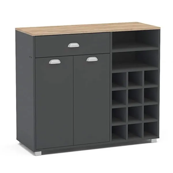 Si buscas un espacio de almacenaje moderno y actual para tu cocina, y además con espacio para las botellas de vino, nuestros buffets botelleros BAKERY2 y ASFELS2 es lo que estás buscando. Acabado perfecto y fácil limpieza y mantenimiento. Color grafito con tapa roble aserrado. ENVÍO GRATIS