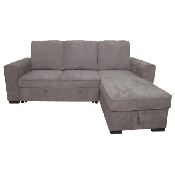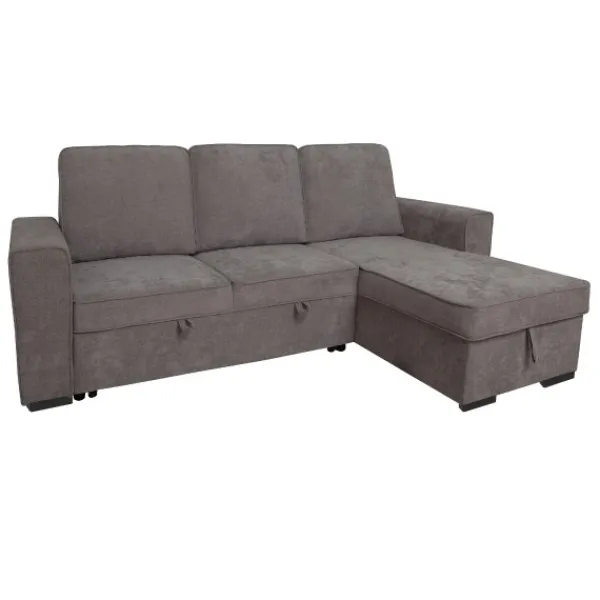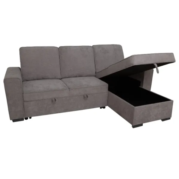 Funcional y elegante, este chaiselongue Nepal se convierte en cama con sistema de apertura inferior extraíble. Incluye arcón en el módulo chaiselongue, estructura de madera robusta y relleno de espuma confortable. Disponible en tapizado beige o gris, y apto para montaje a derecha o izquierda.