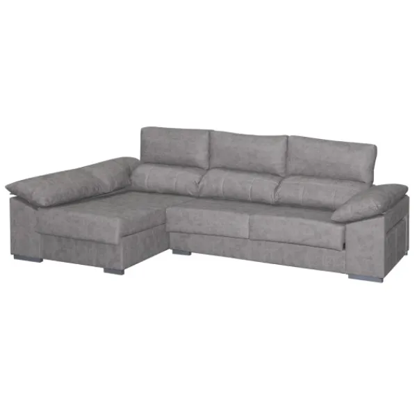 Chaiselongue Franca, es un modelo exclusivo y amplio gracias a sus 300cm. Incluye de todo: asientos extraíbles, respaldos reclinables, dos puffs laterales y arcón. ¡Super completo! Tapizado en tela magnol color cemento.