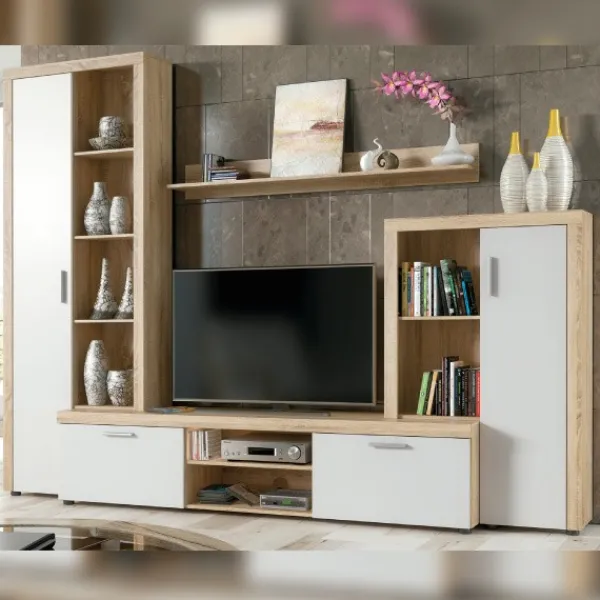 Composición de salón económica de 263cm. de ancho. Perfecta para cualquier ambiente de salón. Disponible en dos posibilidades de color. Mueble KIT