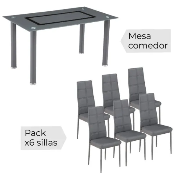 Si buscas un conjunto económico, cómodo y moderno, el modelo Axiss es una opción ideal. Incluye la mesa fija de cristal y el juego de las 6 sillas.