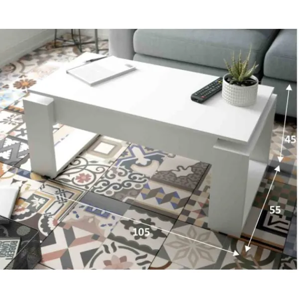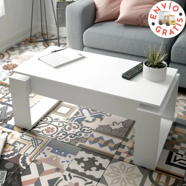 Mesa de centro elevable modelo Urban. Pertenece a una serie sencilla pero de estilo moderno, diseño bonito y funcional. Es de color blanco artik y en su interior tiene capacidad de almacenamiento suficiente para que pongas todo lo que necesites. Completa tu pedido con más artículos de la serie Urban. Tipo KIT.