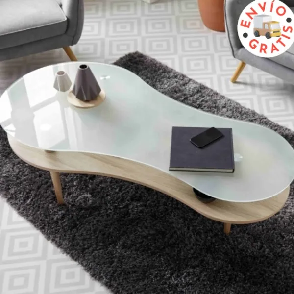 PEANUT es una maravillosa mesa de centro multifuncional de formas redondeadas que combina a la perfección la madera con el cristal templado. Con dos alturas, PEANUT no solo decora un espacio sino que también sirve como almacenaje. ENVÍO GRATIS