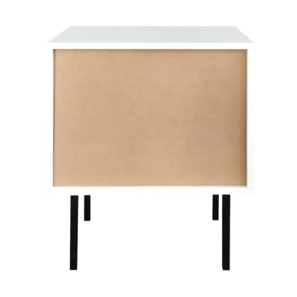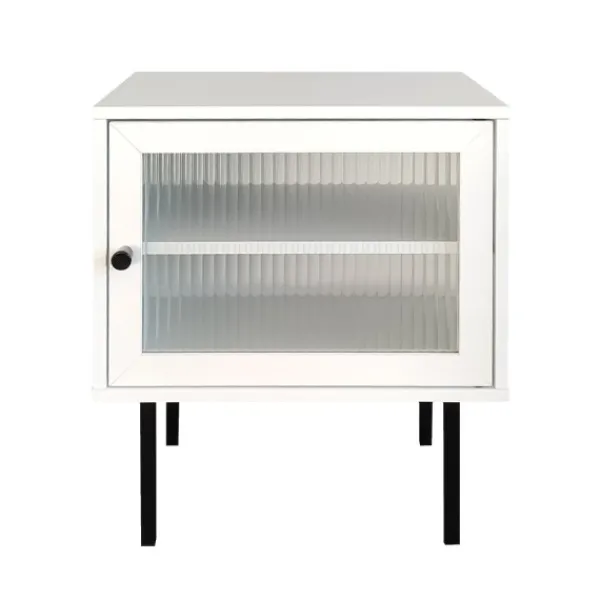 La mesita Vitinia es la más original y diferente, un auxiliar perfecto, con puerta de cristal y dos huecos. Una pata de metal negra que le da el toque elegante y práctico. Mueble Kit.