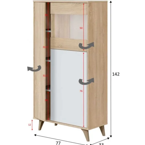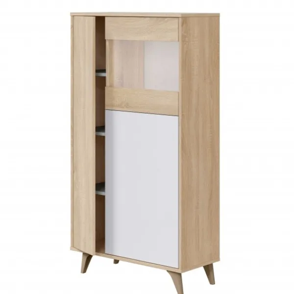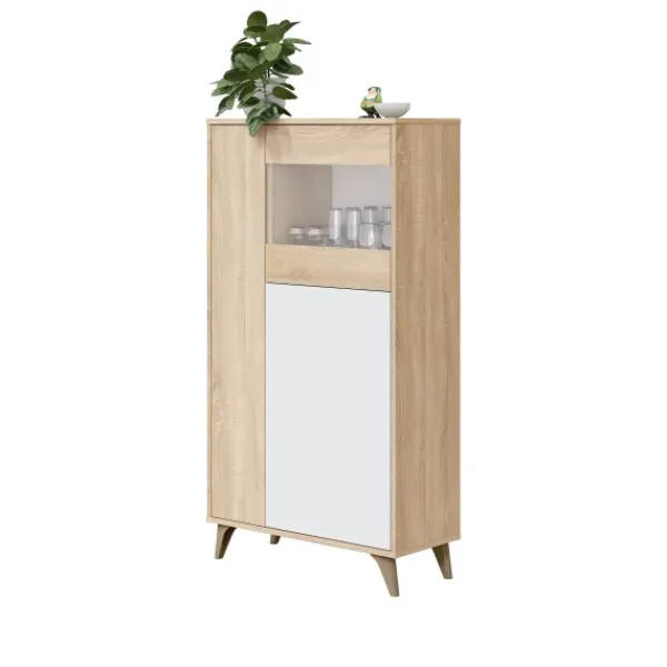 Vitrina de tres puertas modelo Relax Plus. Tiene estantes interiores y es de color blanco artik y roble canadian. Puedes combinarlo con el resto de artículos de la serie Relax Plus. Apertura tipo PUSH. Formato KIT