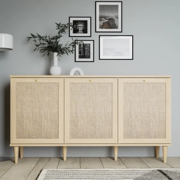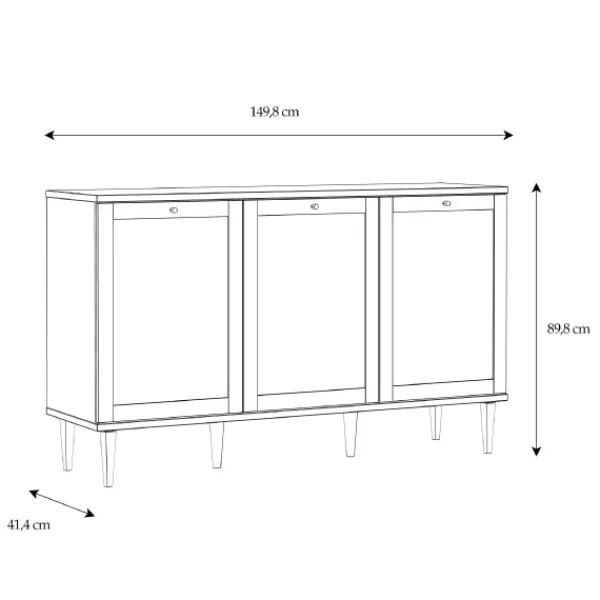 Aparador 3 puertas cactus 150cm, donde prima la textura y el diseño. Funcional y con una gran calidad. Patas altas que facilitan la limpieza del suelo. También podrá encontrar el bajo televisión.