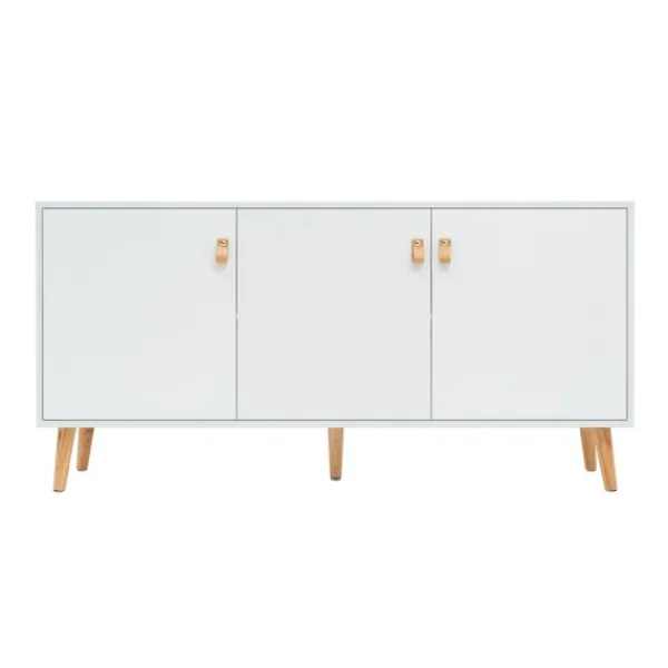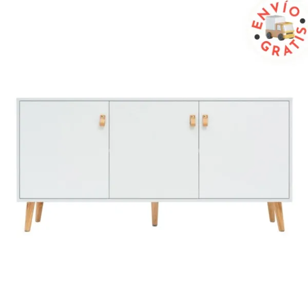 El aparador Anzio de 140cm tiene tres puertas y es el auxiliar perfecto para tener todo en orden. Quedará ideal en el salón, en el salón o en la entrada. Es de color blanco y las patas facilitan la limpieza del suelo. Mueble KIT. ENVÍO GRATIS