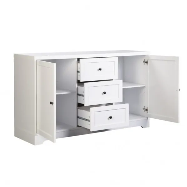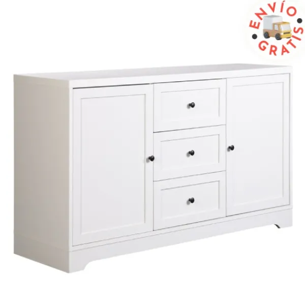 Aparador Ottavia. Cuenta con 3 cajones y 2 puertas, perfecto para guardar y tener organizado cualquier cosa. Su diseño es elegante, actual con aire vintage, perfecto para cualquier estancia, ya sea como aparador propiamente dicho en un pasillo o entrada de casa, o como un mueble de televisión para aquellos que les gusta instalarla alta. ENVÍO GRATIS