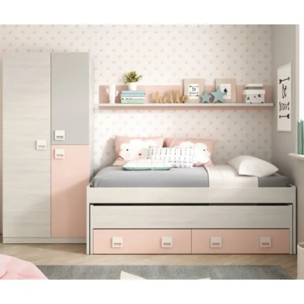 Completa un estupendo dormitorio con la cama doble + estante a juego de la serie Smallow. Se presenta en formato KIT.