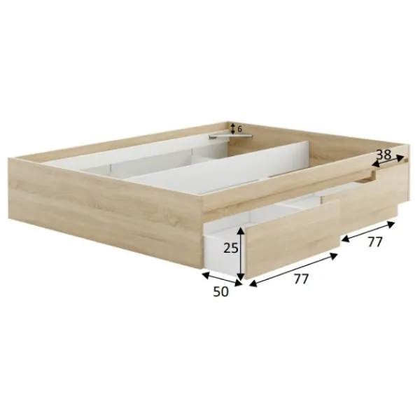 Bañera modelo Bed con cuatro cajones incorporados en su estructura para un almacenamiento extra en tu dormitorio. Es de color roble canadian y para un somier y colchón de 150cm de ancho que no están incluidos.. Tipo KIT. ENVÍO GRATIS