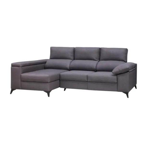 La chaiselongue modelo Hugo de 260cm es un modelo ideal gracias a sus respaldos reclinables y sus asientos deslizantes para que sirva como cama. Además incluye arcón en módulo chaiselongue y brazo. Disponible en tapizado calabria 18 con servicio express