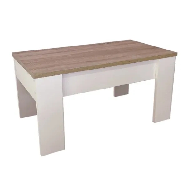 La mesa de centro elevable modelo Gala destaca por su bajo precio. Es un modelo básico, elegante y muy funcional, gracias al tablero elevable y al hueco que se deja en su interior permitiendo almacenaje. Fabricada en tableros melamínicos de alta calidad, está disponible en los colores: blanco, cambria, wengué, cambria-blanco y nogal. Se sirve en KIT. Elementos decorativos no incluidos.
