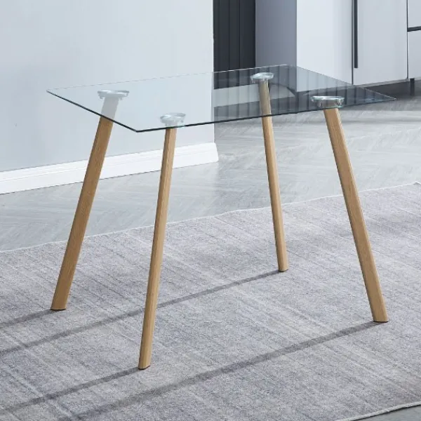 La mesa de cocina Acnes fija destaca por la mezcla perfecta de su tapa de cristal y sus patas en color madera. Combina a la perfección con diferentes sillas, en la web puedes encontrar el conjunto con las sillas lane. Formato KIT.