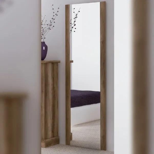 Original mural con luna de la serie Chellén, que a pesar de su color aparentemente rústico esta terminado con lineas modernas. Su llamativo color Cañón no pasará desapercibido, agresivo y sumamente original. Producto perfecto para combinar con el los muebles del resto de la serie o para usarlo como espejo auxiliar en cualquier parte del casa.