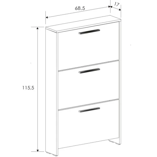 Zapatero con patas y 3 puertas aura. Con diseño minimalista y sencillo para el orden de sus zapatos. Puede combinarlo con la serie Aura disponible en nuestra web. Disponible en dos colores. Mueble KIT
