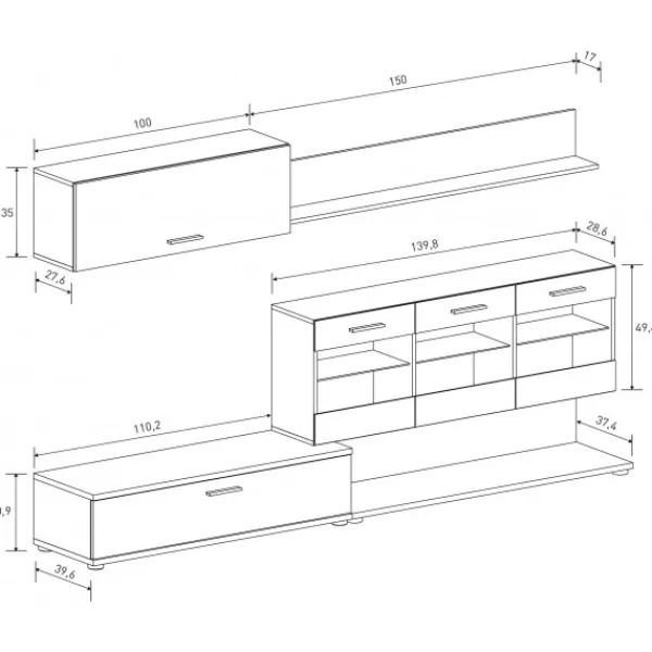 Composición de salón de diferentes colores a escoger. Una manera asequible de hacer que tu salón tenga un estilo único. Incluye LUCES LEDS.