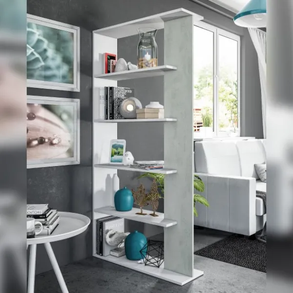 Estantería Lora alta de 5 estantes. Completar cada rincón, mantener el orden y separar ambientes. El auxiliar que necesitas. En color blanco artik – cemento. Tipo KIT. ENVÍO GRATIS