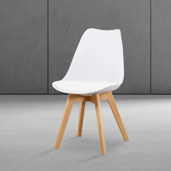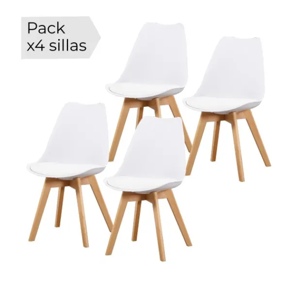 La silla Fina es de estilo nórdico y se vende en juego de 4 sillas. Son de resina con asiento tapizado en PU y patas de madera. Dos colores disponibles a escoger en el desplegable: blanco o gris. Formato KIT.