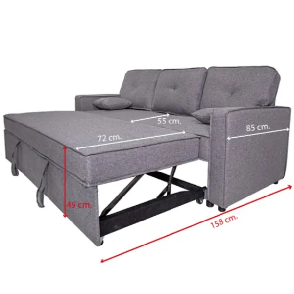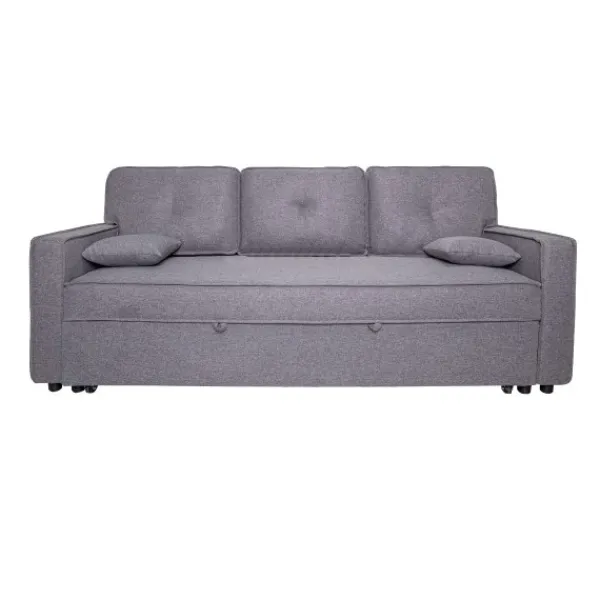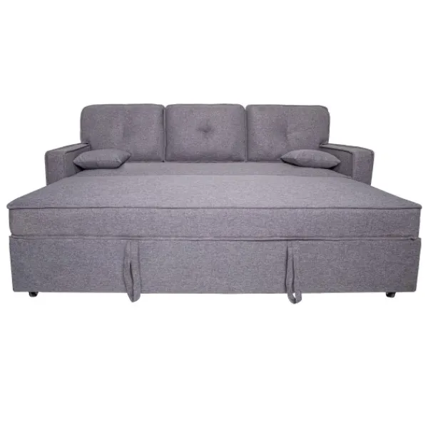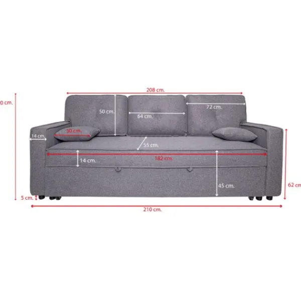 El sofá cama Dax de 3 plazas 3 asientos con brazos mide 210cm y es un modelo perfecto si necesitas una cama extra para tus invitados. Tiene un sistema de apertura cama inferior extraíble. Disponible en tela malmo color gris.