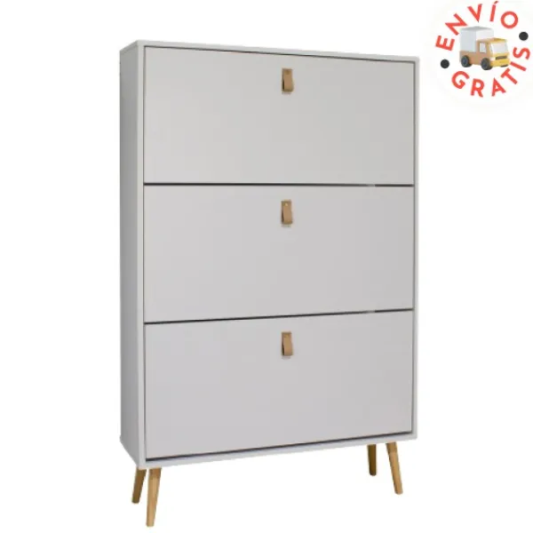 ANZIO es un zapatero con capacidad para 24-32 pares (zapatos tallas grandes o pequeñas). En tablero de aglomerado melaminizado de 15mm, tiradores en simil piel PU (poliuretano) y patas en madera de pino barnizadas con un tono natural, ANZIO es un zapatero elegante y muy sofisticado. ENVÍO GRATIS