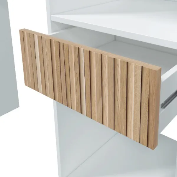 Armario-vestidor con estantes, tres cajones y 2 barras de colgar. Una opción práctica, económica y muy visual donde almacenar tu ropa. Disponible en blanco artik – natur. ENVÍO GRATIS