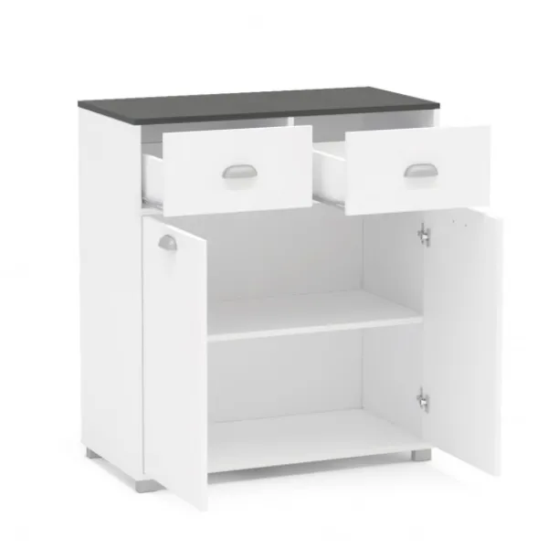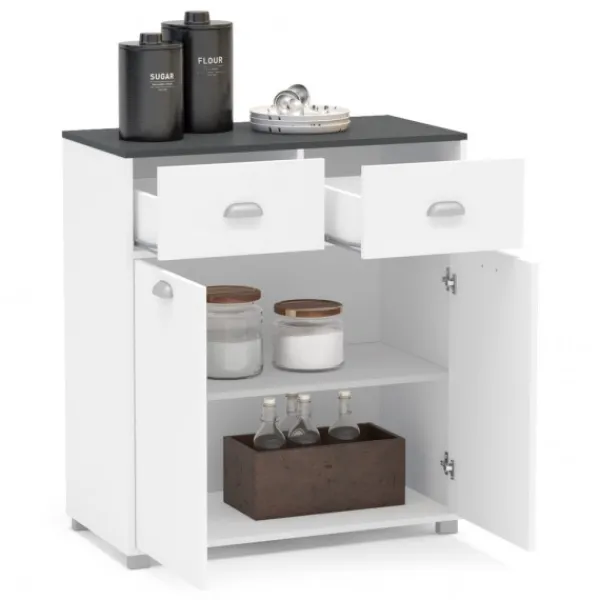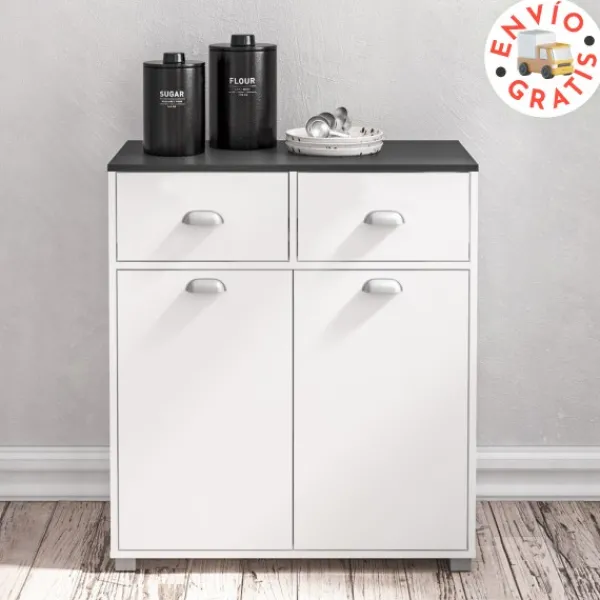 Los buffets bajos BAKERY2 o ASFELD2 te ofrecen la posibilidad de un amplio almacenamiento en un mueble elegante y actual que viste cualquier rincón de tu cocina, para tenerlo todo bien ordenado. Color blanco con tapa grafito. ENVÍO GRATIS